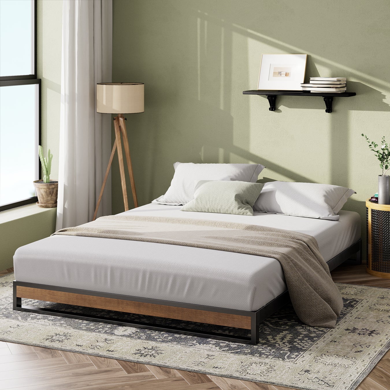 天然木と黒塗装スチールフレームによるモダンデザインの洗練された空間を演出する、ベッドフレーム。