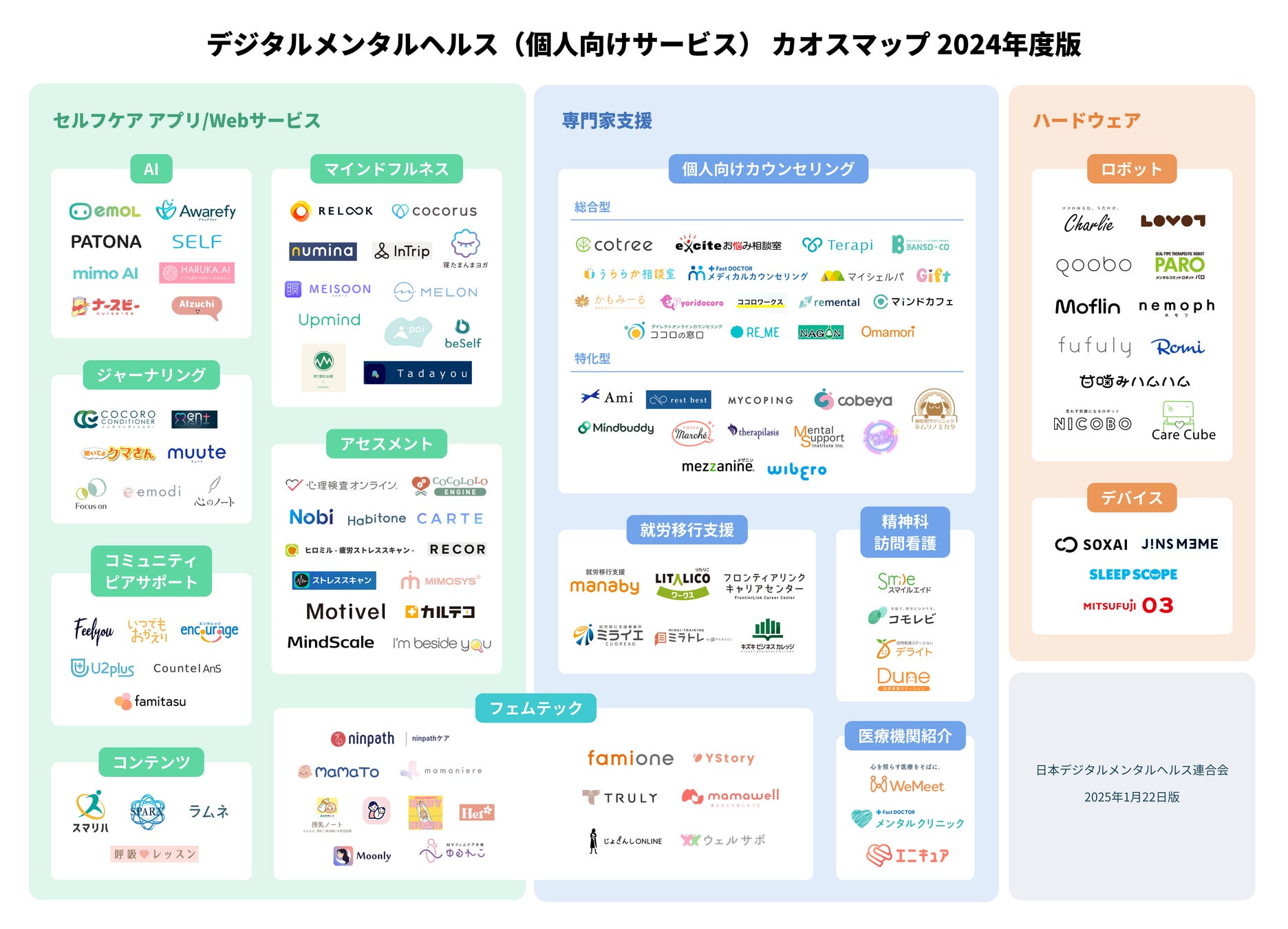 「デジタルメンタルヘルス(個人向けサービス) カオスマップ 2024年度版」を公開!日本デジタルメンタルヘルス連合会も発足