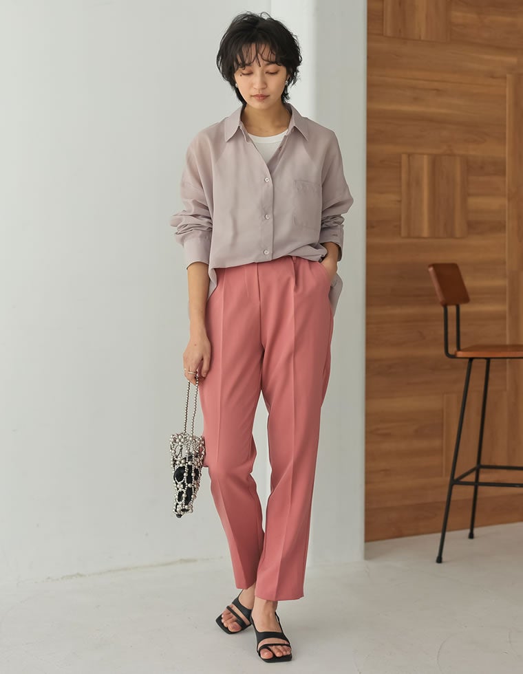 リサイクルストレッチツイルゆったりタックテーパードパンツ