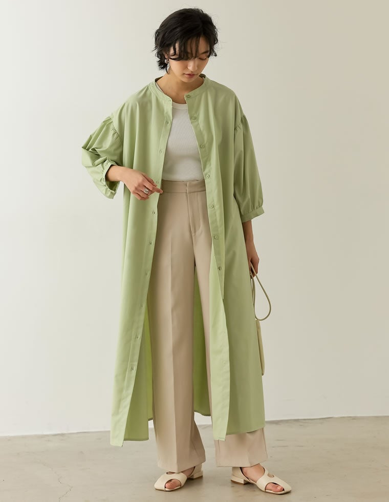 ボリュームスリーブマキシシャツワンピース