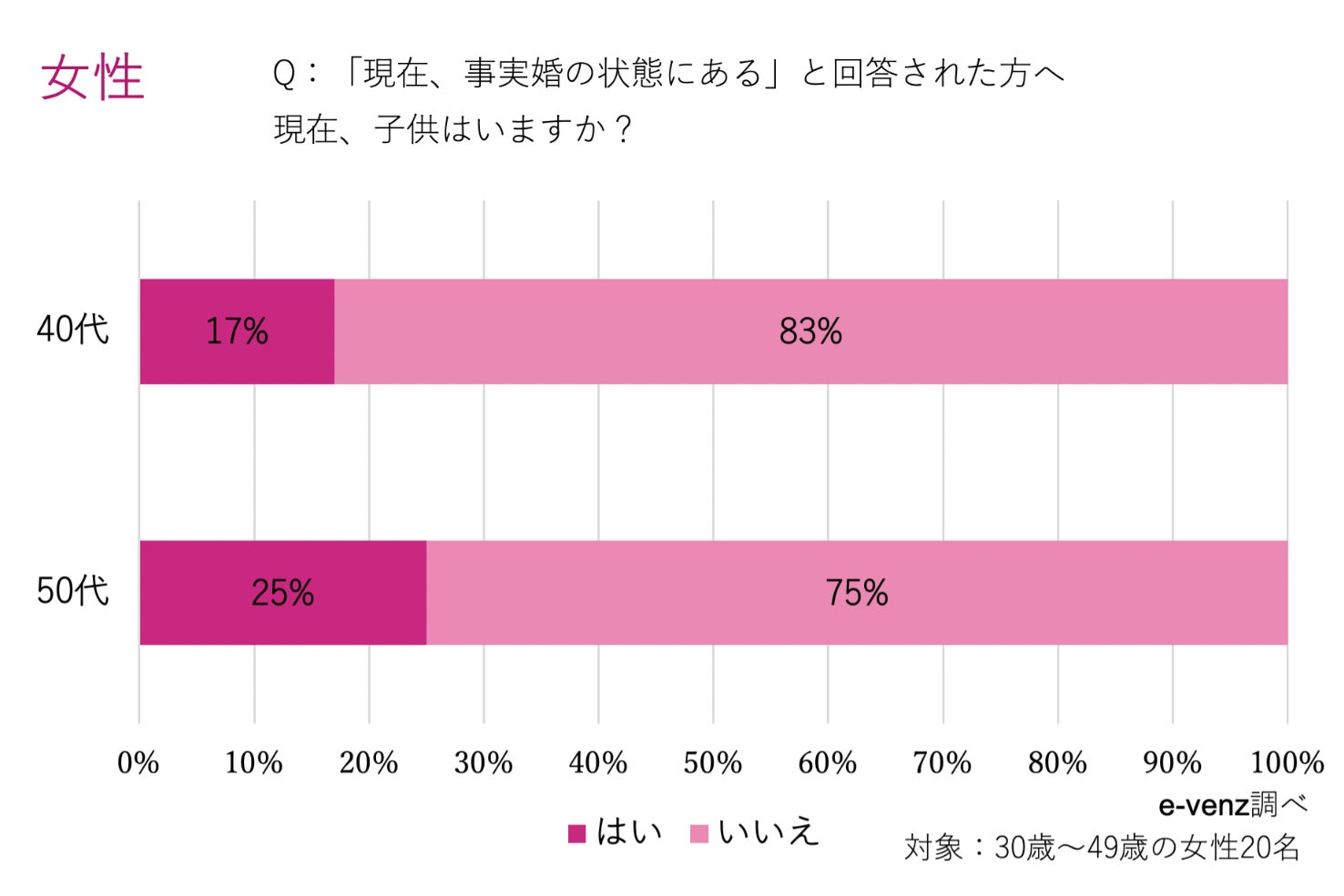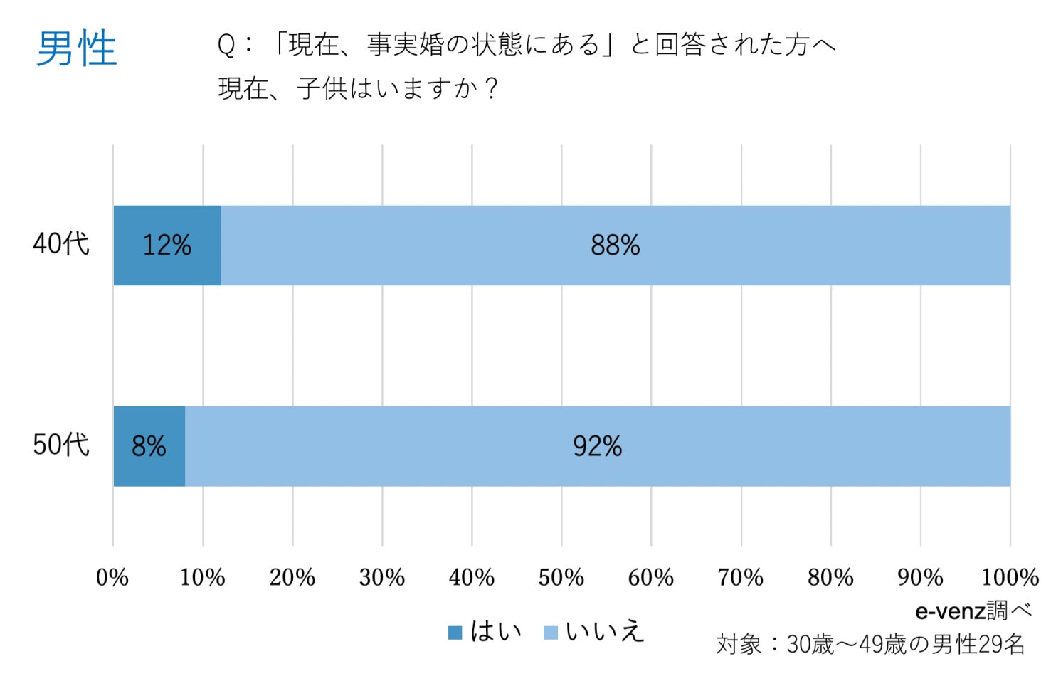事実婚の実態について調査すべく、今回e-venzでは40代から50代の独身男女を対象に事実婚に関するアンケート調査を実施しました。