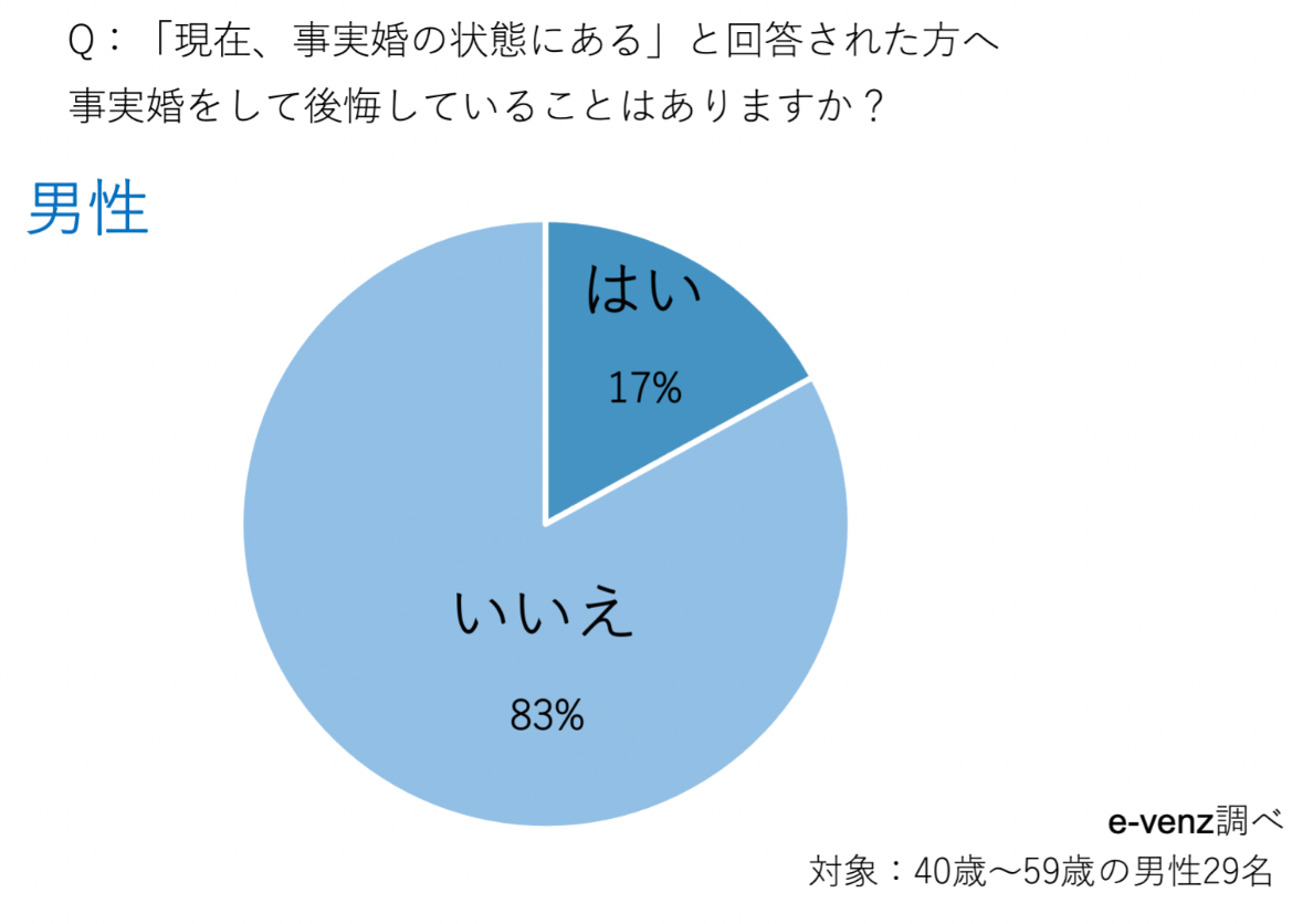 男性の17%、女性の10%が「事実婚を後悔している」と回答しています。
