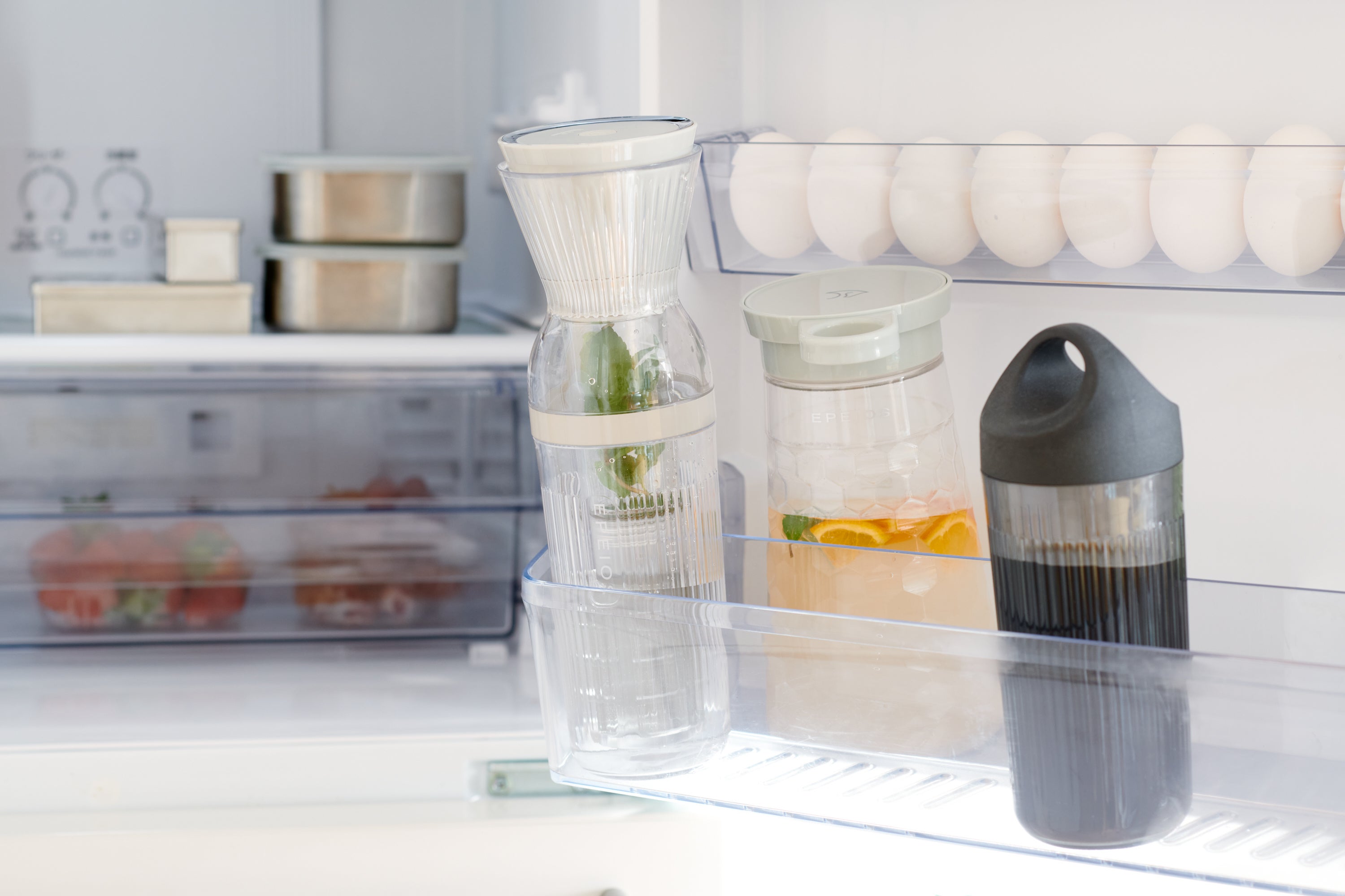 冷蔵庫のドアポケットに収まるスマートデザイン