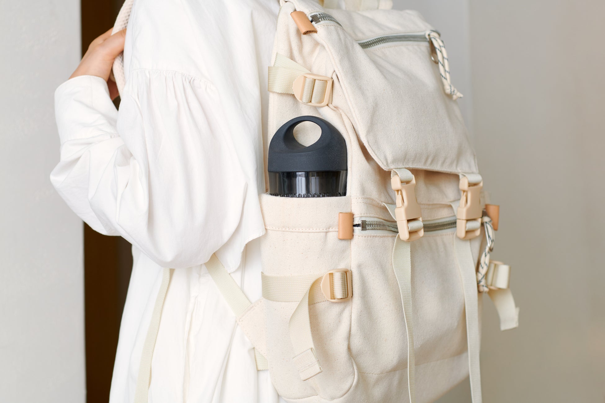 ガラスのような高い透明度でありながら、傷がつきにくく割れにくい、日常使いに適した素材とカラー(スモークブラック)を採用したことにより、オフィスや外出先、アウトドアでもおしゃれで使い勝手のいい仕上がりとなりました。