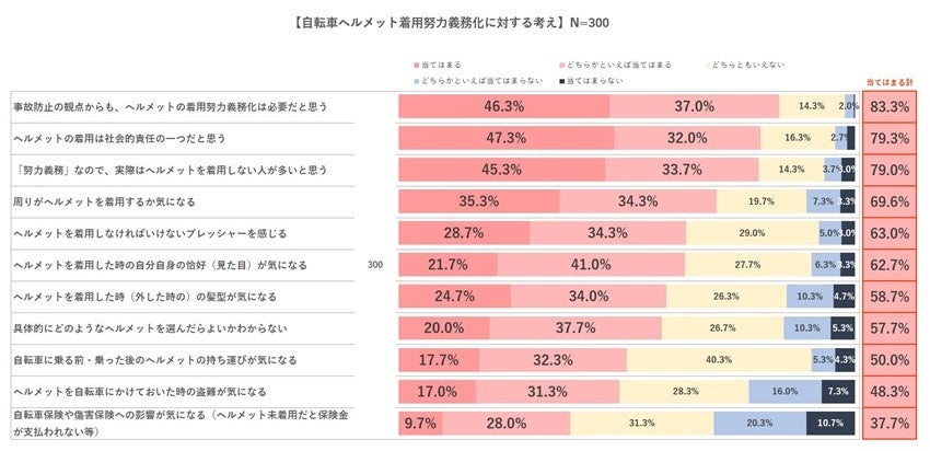 【自転車ヘルメット着用努力義務化に対する考え】(N=300)