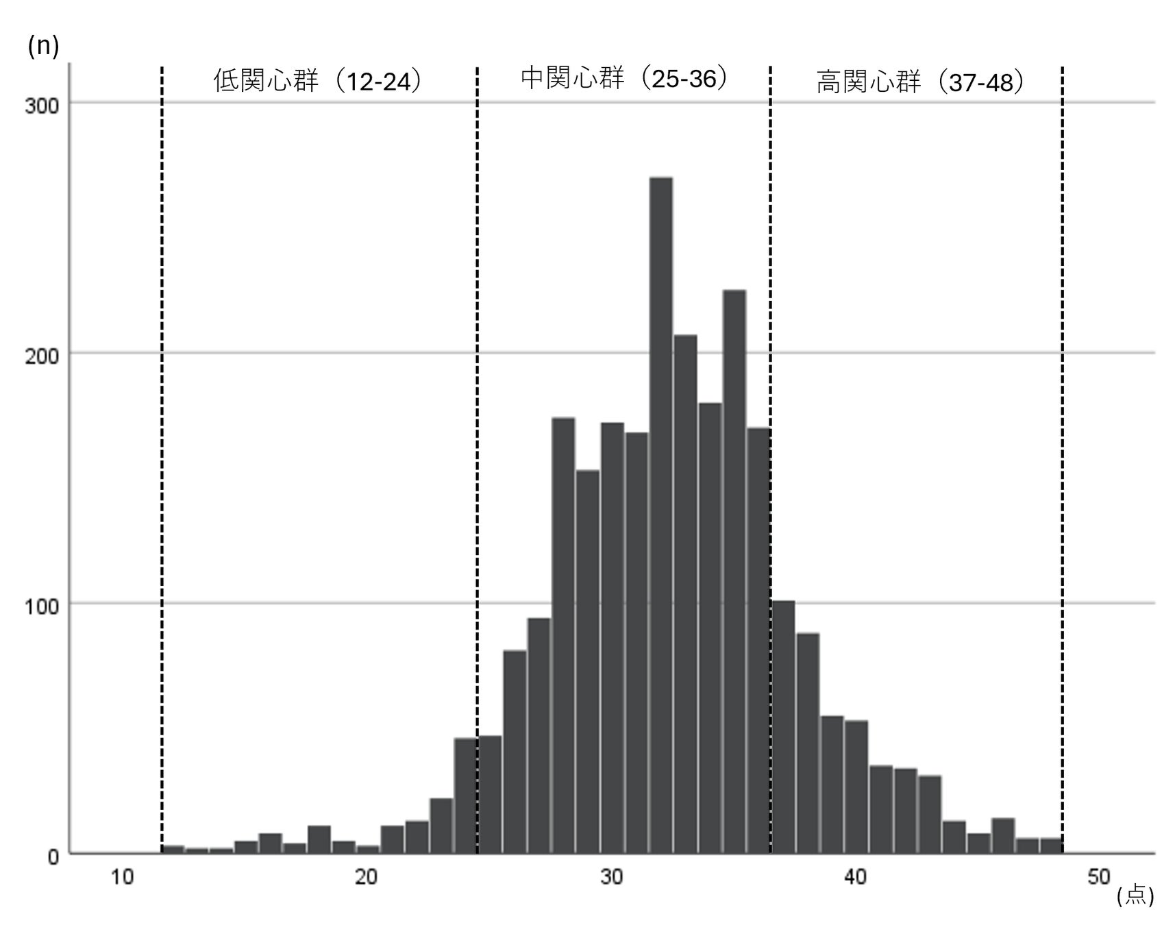 図1 健康関心度尺度(合計得点)の分布