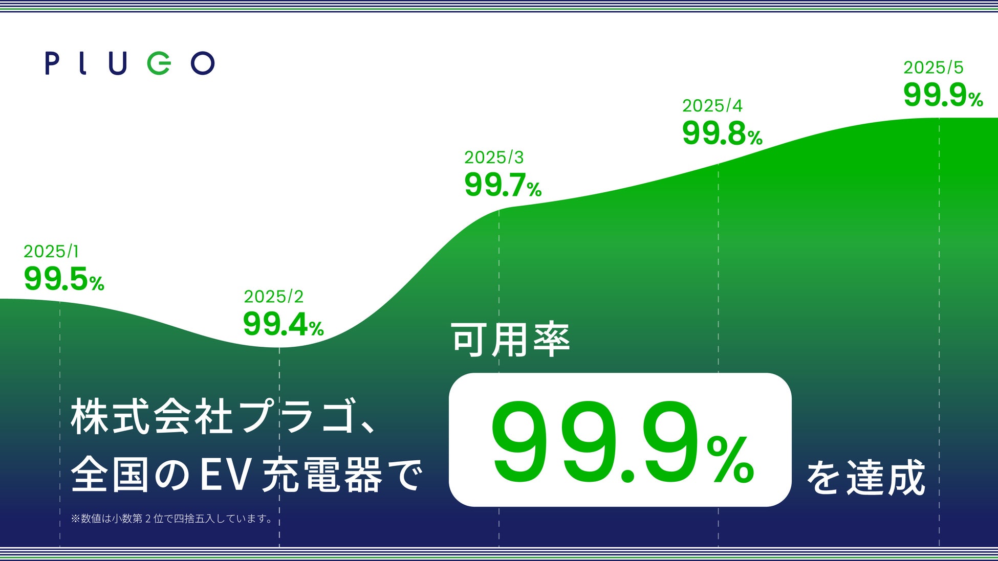 EV充電インフラ事業を展開する株式会社プラゴ(東京都品川区、代表取締役CEO 大川 直樹、以下「プラゴ」)は、2025年5月末時点で、自社が管理するEV充電器において、「可用率99.9%(スリーナイン)」を達成したことをお知らせします。(※1)