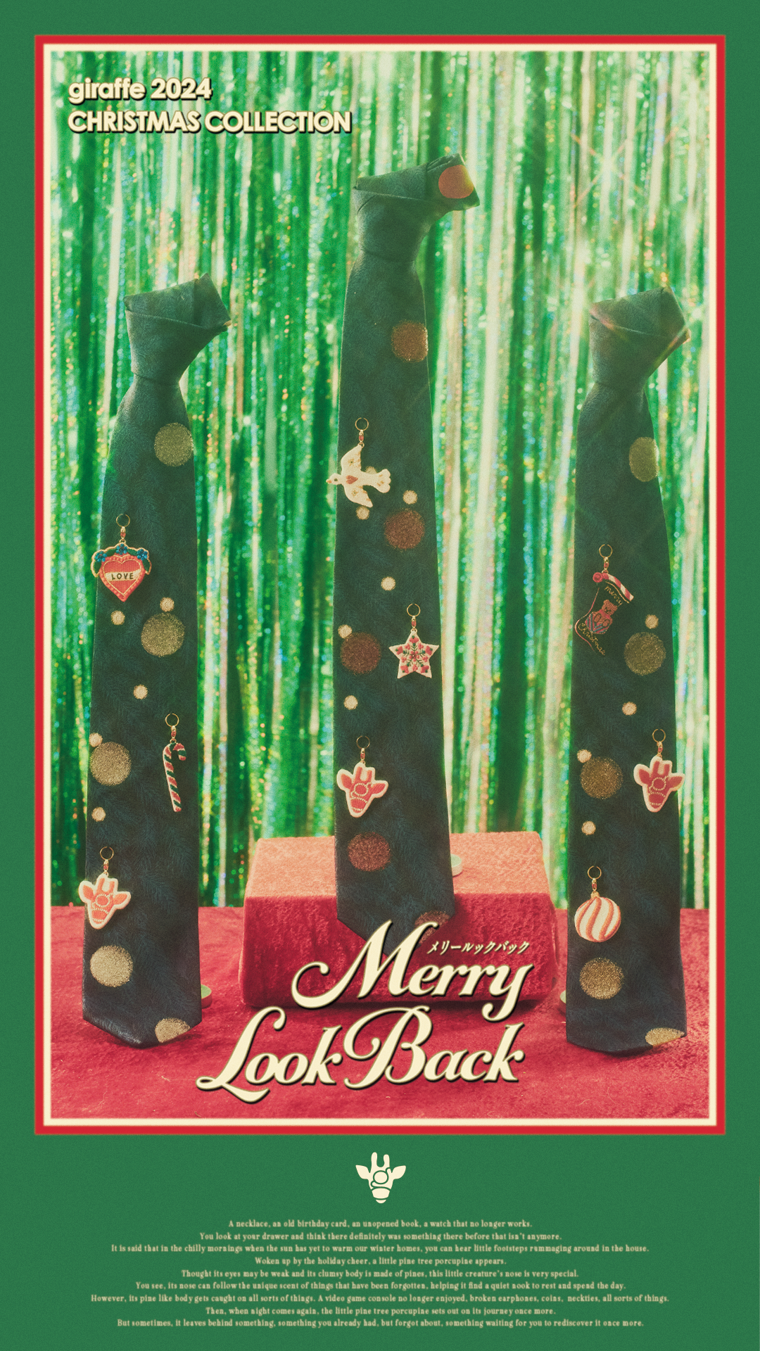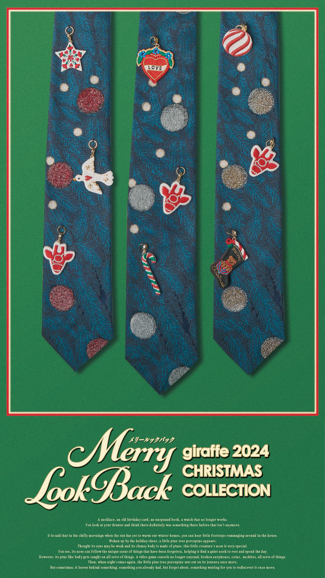 株式会社スマイルズが運営するネクタイ専門ブランド「giraffe」は、2024 年11月下旬より「オーナメントタイ」の販売を開始しました。今季のクリスマスコレクションのテーマは「Merry Look Back」。大人になっても続いていく、ホリデーシーズンの温かな記憶や高揚感を表現しています。