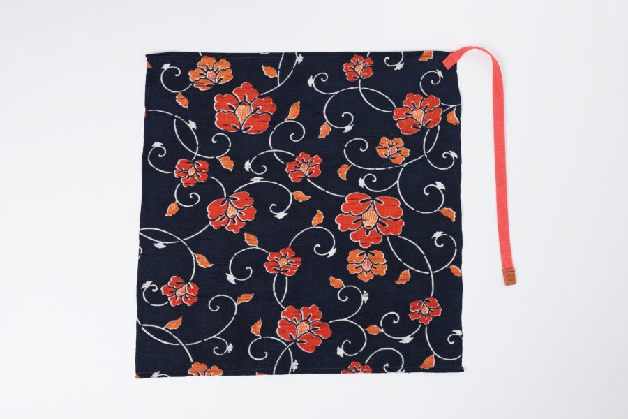 小風呂敷は、一般的なハンカチよりも一回り小さい36~38cm角。収納時はコンパクトな「道具巻き」として、作業時にはマットや小物置きとしてもお使いいただけます。