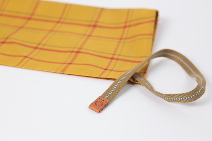 巻紐には、茶道具や帯締めにも用いられる丈夫な真田紐を使用。真田紐の先には、Cohanaのロゴが入った革タグを縫い付けています。