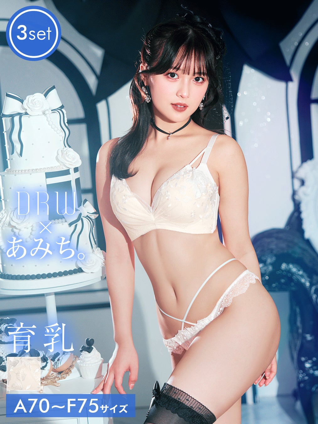 人気インフルエンサー、あみち。さんの持つ少女っぽいあどけなさと、大人の色っぽさを兼ね備えた新作ランジェリー。女の子なら誰しも憧れる「大人カワイイ」を表現しました。