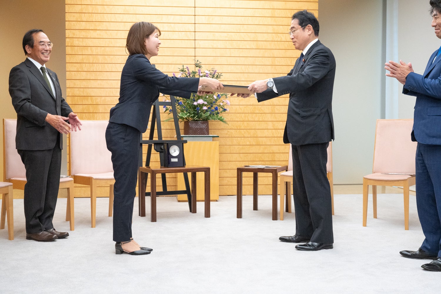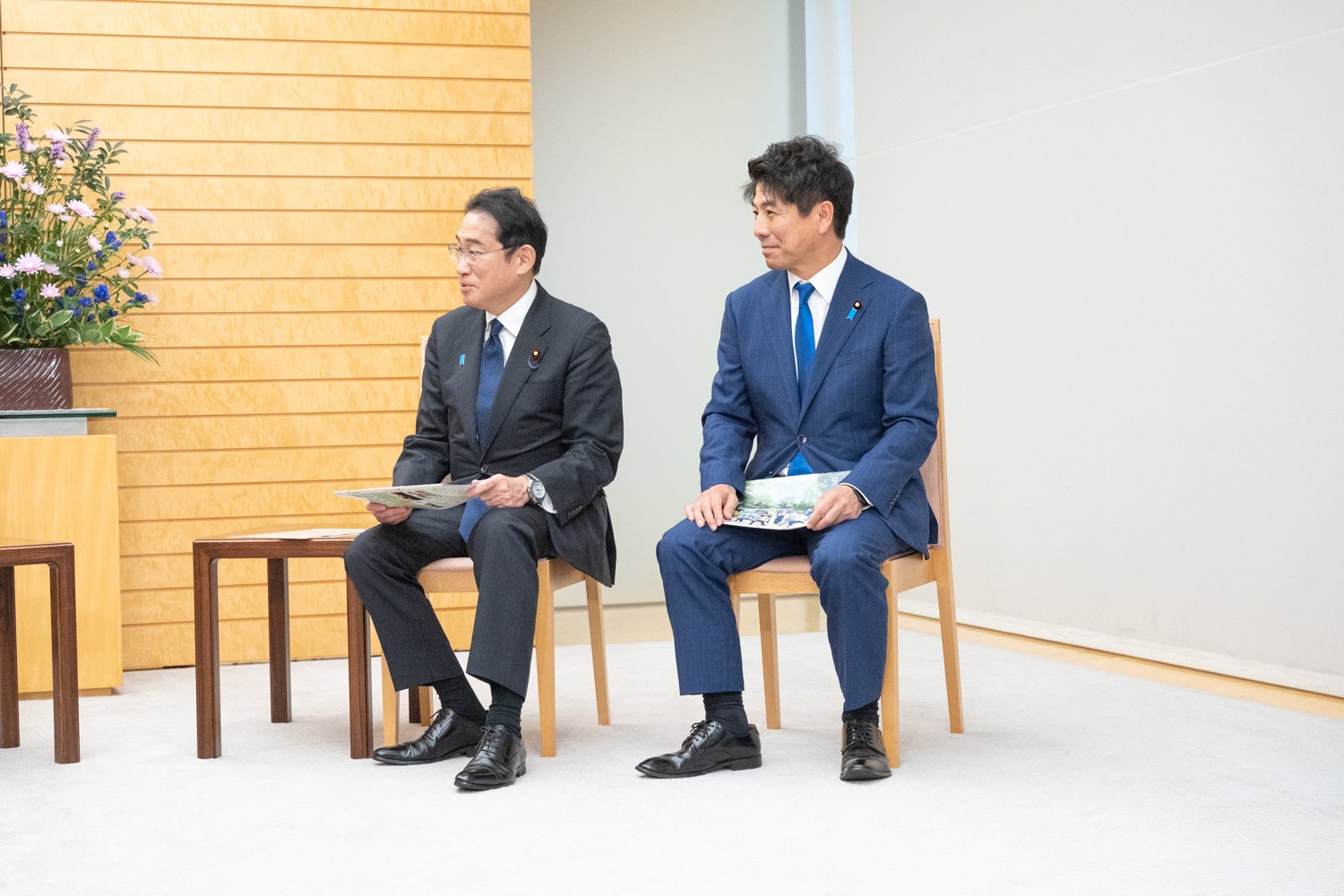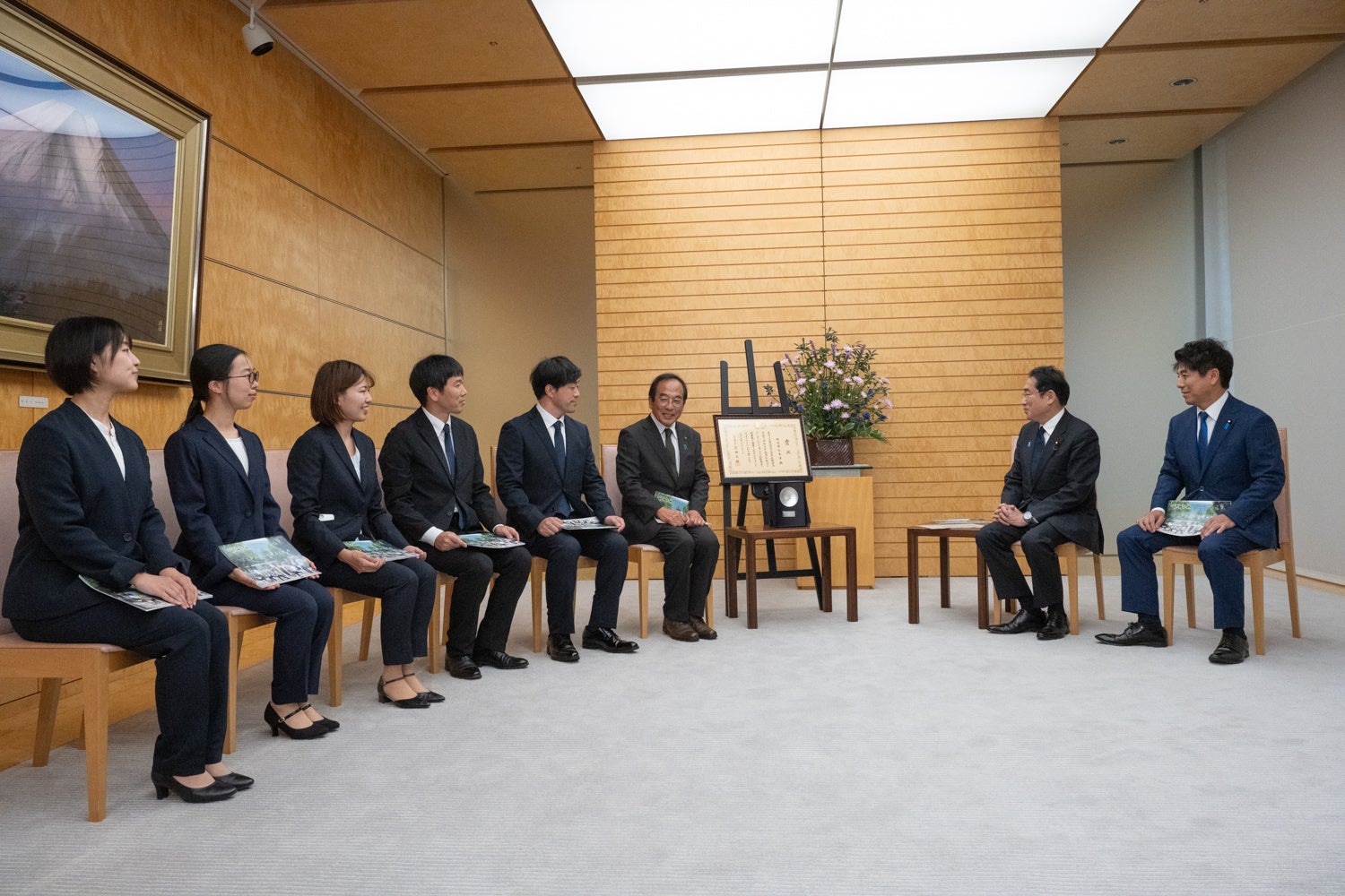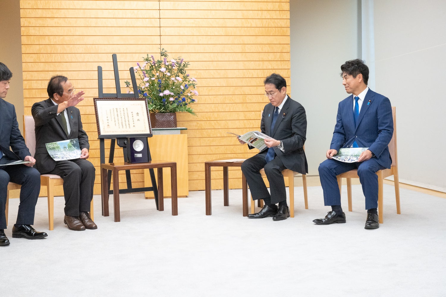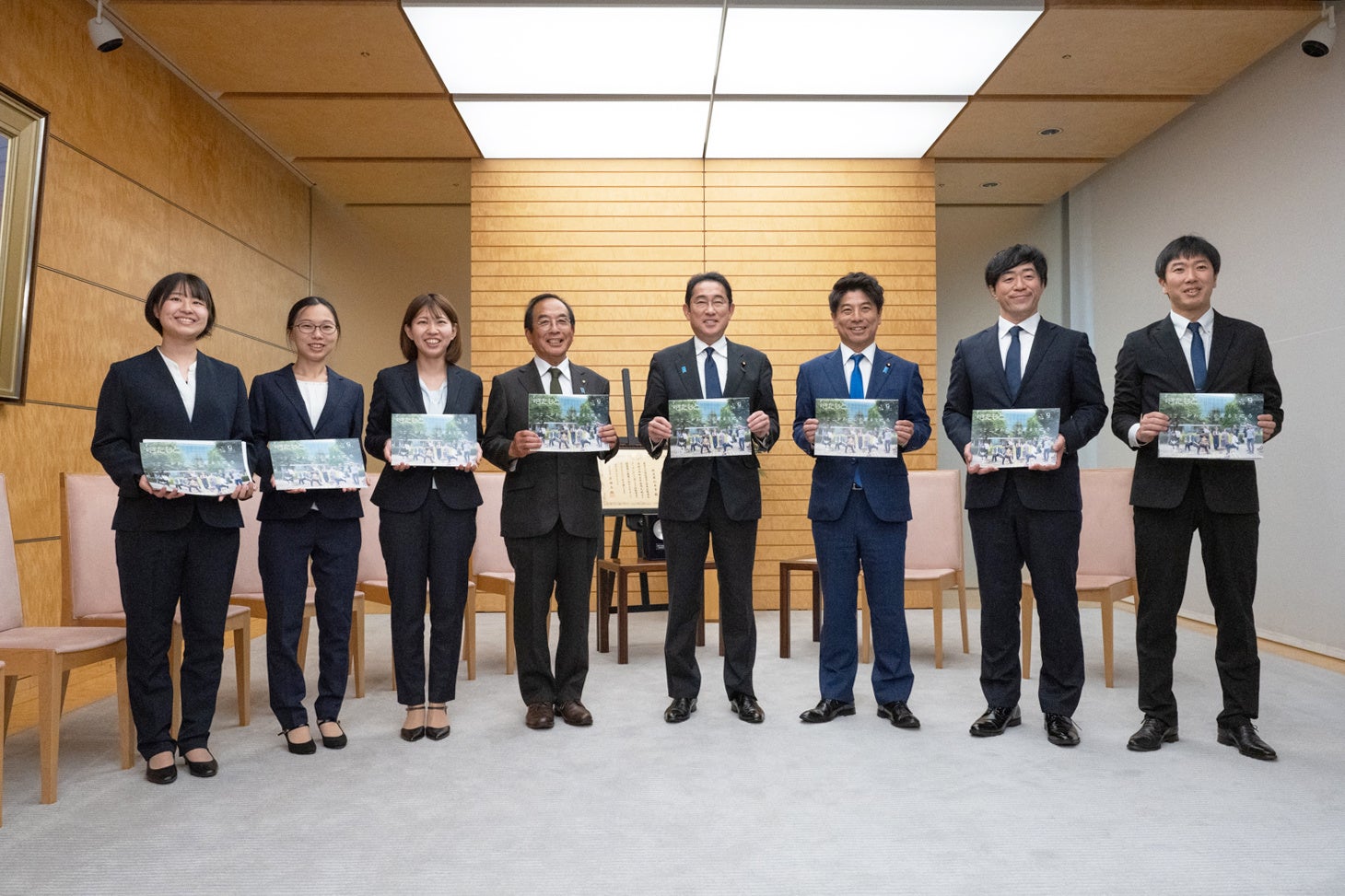 これを受け、三宮幸雄市長および担当職員が賞状と銀杯を首相官邸へ持参し、岸田文雄内閣総理大臣へ受賞を報告。中根一幸衆議院議員が同席しました。