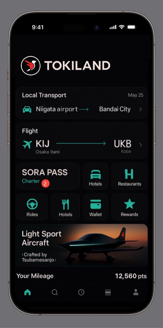 新潟を起点としたスーパーアプリ構想「TOKILAND」。「新潟の暮らしを、日本一便利に。」を掲げ、一次交通から二次交通、病院・レストラン予約、決済・マイレージ・ポイント連携まで、生活インフラをワンストップで統合することを目指ます。