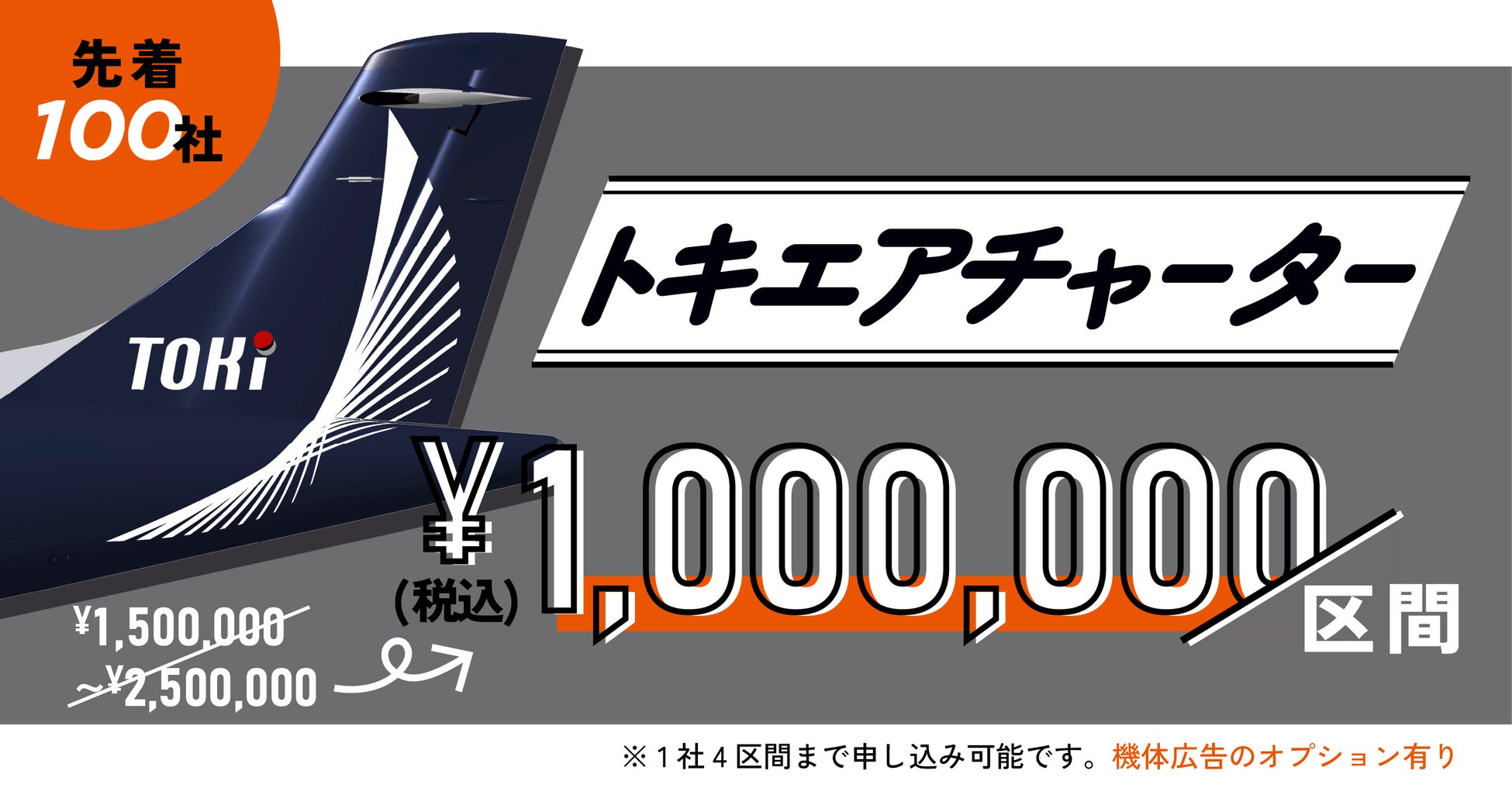 TOKI AIRが目指すのは、エンターテインメントとテクノロジーを融合させた“航空産業の民主化”です。誰もが自由に空を行き交う未来 ―― その革命は、今日から始まります。TOKI AIRによる新たな航空時代の幕開けが、ここから始まります、我々のチャレンジにご期待ください。
