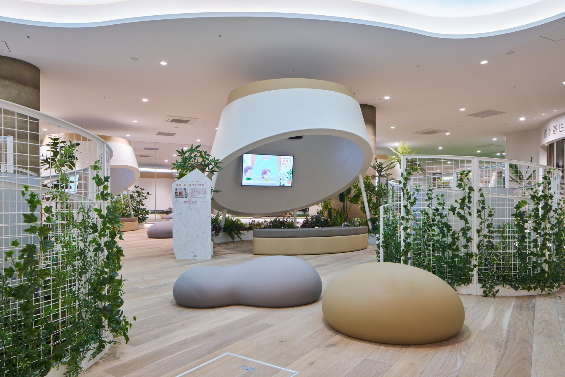 中央には、声や人の動きに反応して幻想的に形を変えるキネティックアートが設置されており、心を解きほぐしながら未来の暮らしを描くひとときをお楽しみいただけます。