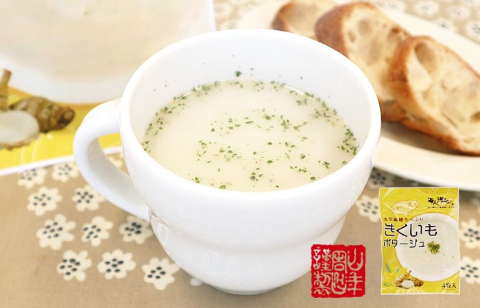 巣鴨のお茶屋さん山年園のインターネットショップにて、菊芋ポタージュの販売を開始いたしました。食物繊維たっぷりで菊芋の風味豊かなクリーミーなポタージュです。