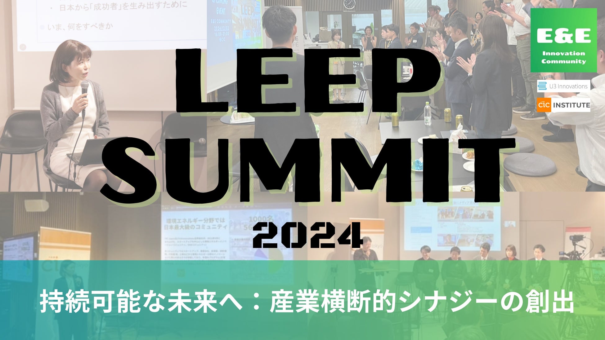 CIC Tokyo(本社:東京都港区虎ノ門、職務執行者: ティム・ロウ、以下「 CIC 」)が、環境エネルギー分野のイノベーション創出を加速するため、U3 イノベーションズ合同会社と共同で運営する、環境エネルギーイノベーションコミュニティ(以下「 E&E コミュニティ」という。)は、2024 年 12 月3 日(火)に日本最大級の環境エネルギーイノベーションの祭典、「 LEEP SUMMIT 2024 」を開催します。