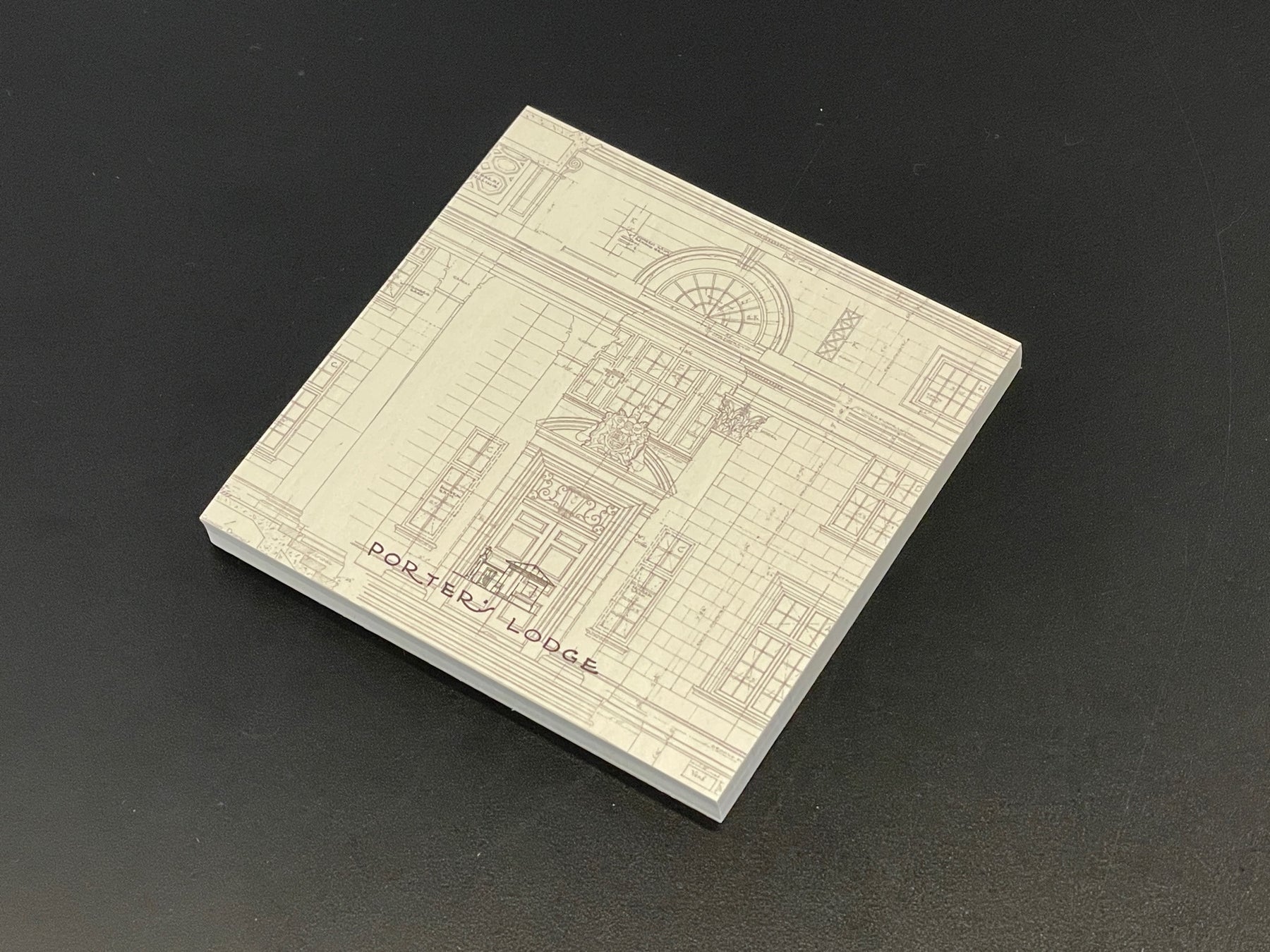 【デザイン】 「PORTER’S LODGE」のロゴマークを、昭和6年の竣工にあたって作成された手書きの「英国総領事館関係建築図面」にあしらったブロックメモです。メモ帳面には横浜開港資料館に隣接する開港広場側に現存する門柱の建築図面を使用しています。