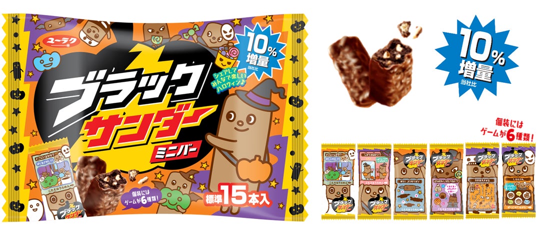 ハロウィンを盛り上げるブラックサンダー登場♪ ゲーム付きで楽しい!10%増量でお得な大袋!『ブラックサンダーミニバー ハロウィン』新発売‼