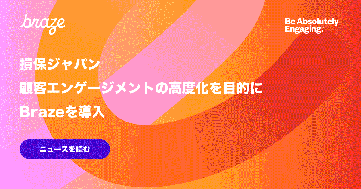 カスタマエンゲージメントプラットフォームのリーダーであるBraze株式会社(本社:東京都港区、代表取締役社長:水谷 篤尚、以下「Braze」)は、国内損害保険市場でトップクラスのマーケットシェアを占める損害保険会社、損害保険ジャパン株式会社(代表取締役社長:石川 耕治、以下「損保ジャパン」)が顧客エンゲージメントの高度化と内製化を目的にBrazeを導入すると発表しました。