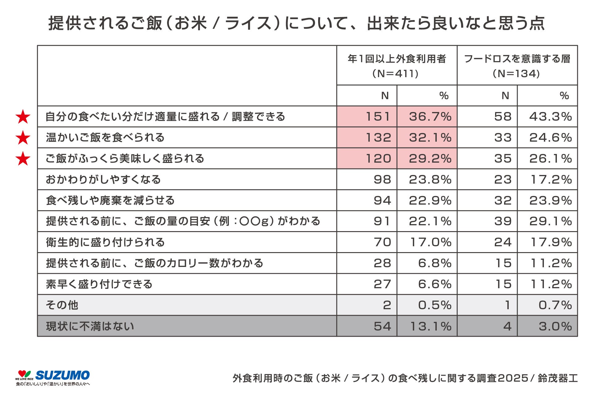 【10月は「食品ロス削減月間」】外食利用時のご飯(お米/ライス)の食べ残しに関する調査2025/鈴茂器工
