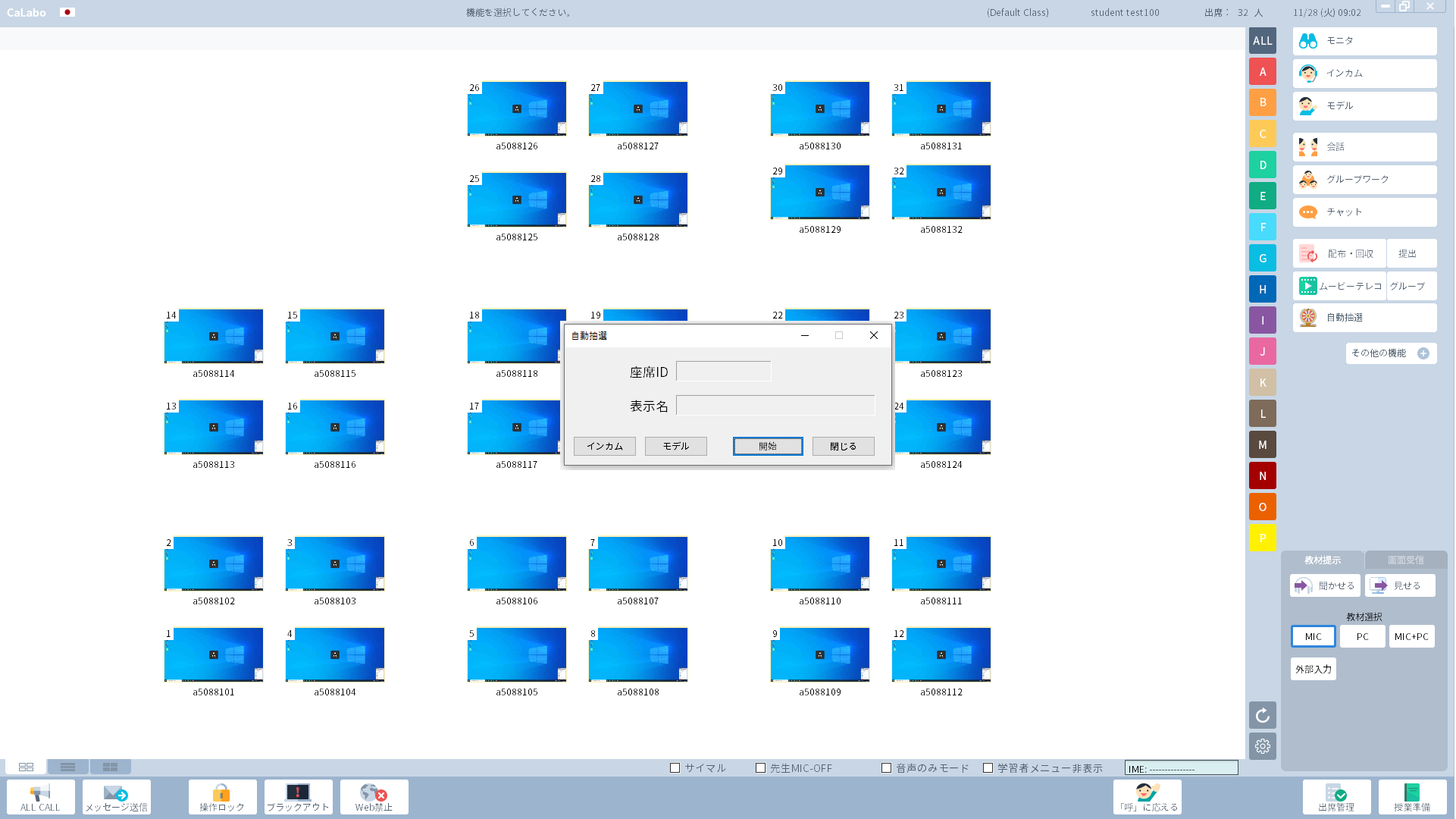 今回のバージョンアップ以降は、先生は手元のPCで、インストール直後のデフォルトからコントロール画面上のパネル表示に設定を切り替えられます。「自動抽選」のアイコンが常にトップ画面に表示されますので、先生は課題の回答者や発表順をタイムリーに自動抽選できます。