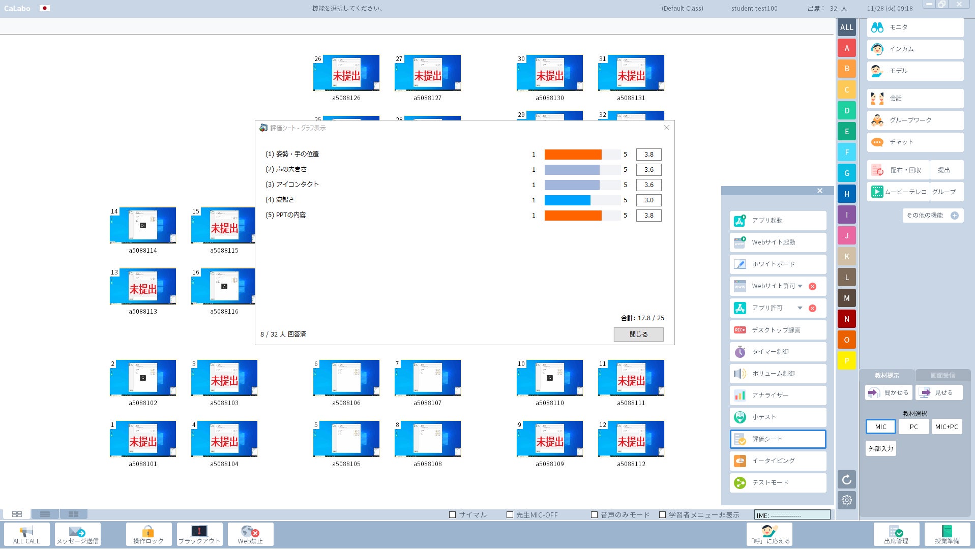 (3)「評価シート」の未提出者が一目瞭然。先生の円滑な授業進行を支えます!