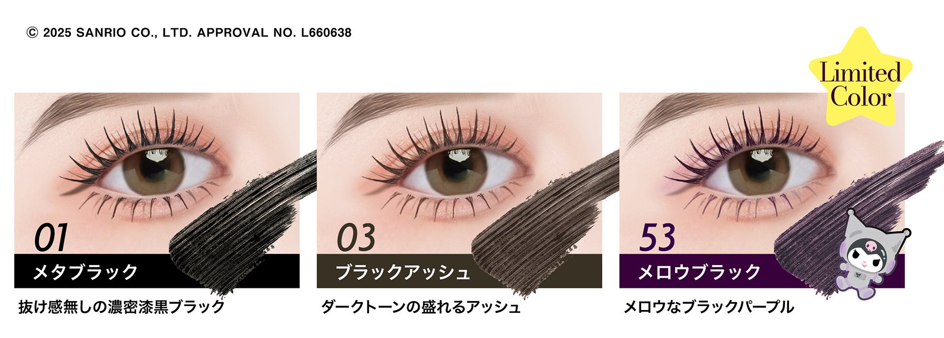 <53 メロウブラック> クロミをイメージした限定カラー!パッケージはラッシュガーディアンアングラヴィティマスカラの無重力級カール力にちなんで宇宙に飛び出すようなクロミに!