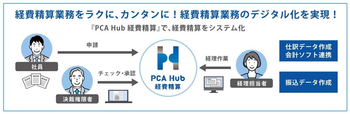 『PCAクラウド』や『PCAサブスク』をはじめとする、サブスクリプション型基幹業務システムを開発・販売するピー・シー・エー株式会社(代表取締役社長:佐藤文昭 本社:東京都千代田区 プライム銘柄コード9629 以下:PCA)は、中小・中堅企業における社内業務や企業間取引のデジタル化を推進する『PCA Hub(ピーシーエーハブ)』の新サービス『PCA Hub 経費精算』を、2025年4月24日にリリースいたしますので、お知らせいたします。