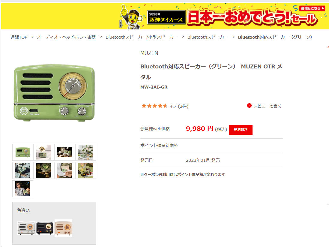 MUZEN OTRスピーカーが、上新電機「阪神タイガース 日本一おめでとうセール」にて特別価格で販売中!