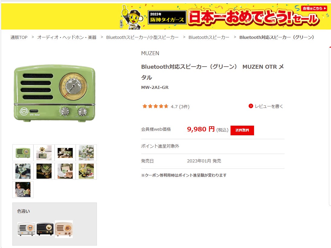 越境EC支援や日本企業の海外進出支援などを手掛ける株式会社行雲商事(資本金3億500万円・代表取締役社長:惠昊 以下「当社」)は、音響家電メーカーであるMUZENのOTRスピーカーを上新電機で「阪神タイガース 日本一おめでとうセール」にて特別価格で販売中。