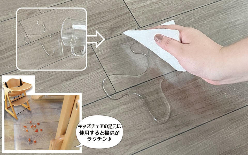 キッチンの足元はもちろん、ダイニングテーブルの下などに敷くと子どもの食べこぼし掃除も楽にできます。