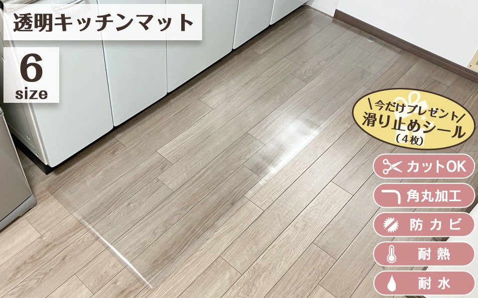 この『透明キッチンマット』なら、お部屋の雰囲気を損なわずに、汚れ・へこみ・引っ掻きキズ・水濡れ・カビなどで汚れやすいキッチンを守ってくれます!