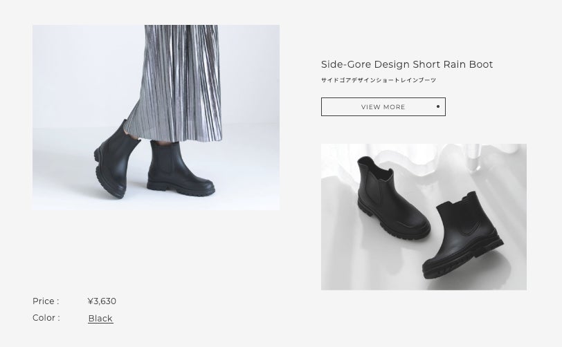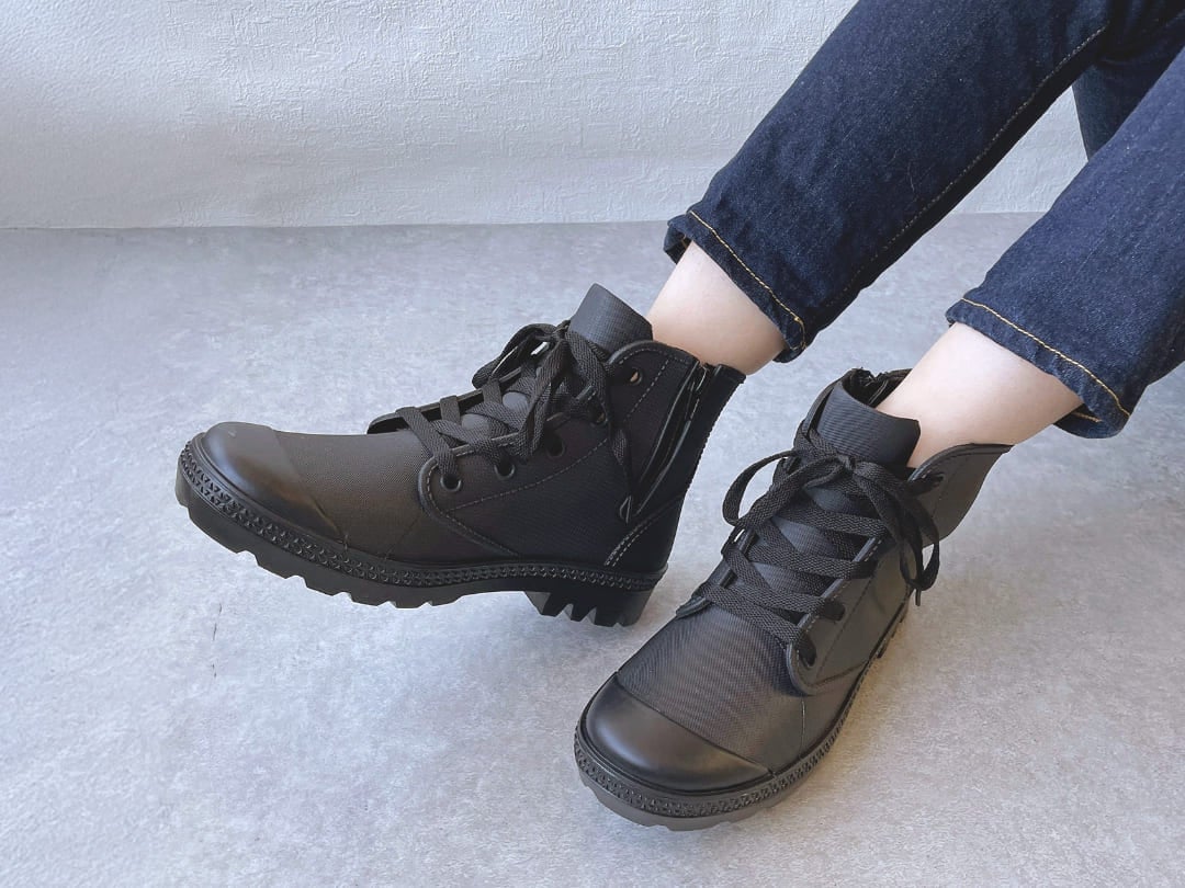 コーディネートに程よい存在感をプラスするレインショートブーツ。