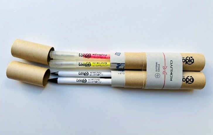 コクヨグループで Eコマースサービスを提供する株式会社カウネット(本社:東京都港区/代表取締役社長:宮澤典友 以下「カウネット」)は、カウネットが提供する オフィスの紙資源リサイクルサービス「カウネットLoopa(ルーパ)」とプラスチック資源リサイクルサービス「カウネットLoopla(ループラ)」の取り組みの一環として、エコノベルティ「Loopa&Looplaペンセット」を製作しました。