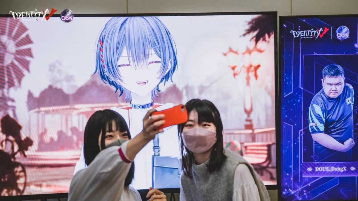 今回のCOAⅤは初めて2会場で開催されました。東京のオフライン会場は今回のCOAⅤでも見どころとなっており、細部にまでこだわった演出によって、会場で観戦した1000人近い観客を魅了しました。会場全体を半円状のステージとしており、会場の内外のつながり、インタラクティブイベントのデザインなど、あらゆる面で観客たちがeスポーツ会場にいるかのような臨場感を強くもてるようになっていました。会場の外に登場したVtuberの「Vちゃん」は、会場を訪れた観客から好評を博し、Vtuberとの会話のために長蛇の列が作られました。会場の外には他にも大会ミニゲームのお試しエリアが設けられ、観客は『Identity Ⅴ』大会の関連ミニゲームを体験していました。