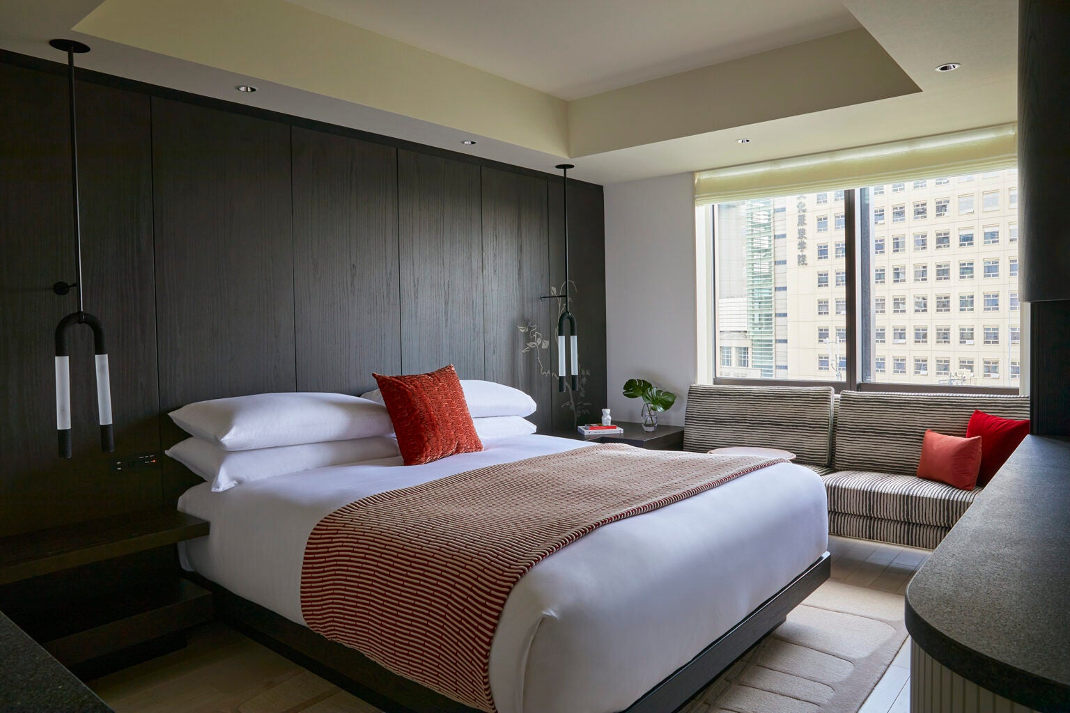 キンプトン新宿東京のエッセンシャルルームにステイする、ラグジュアリーライフスタイルプラン。好奇心を呼び起こすユニークなプランと、インスピレーションが刺激されるアーティスティックな空間で、とんでもなくパーソナルで記憶に残るステイを。