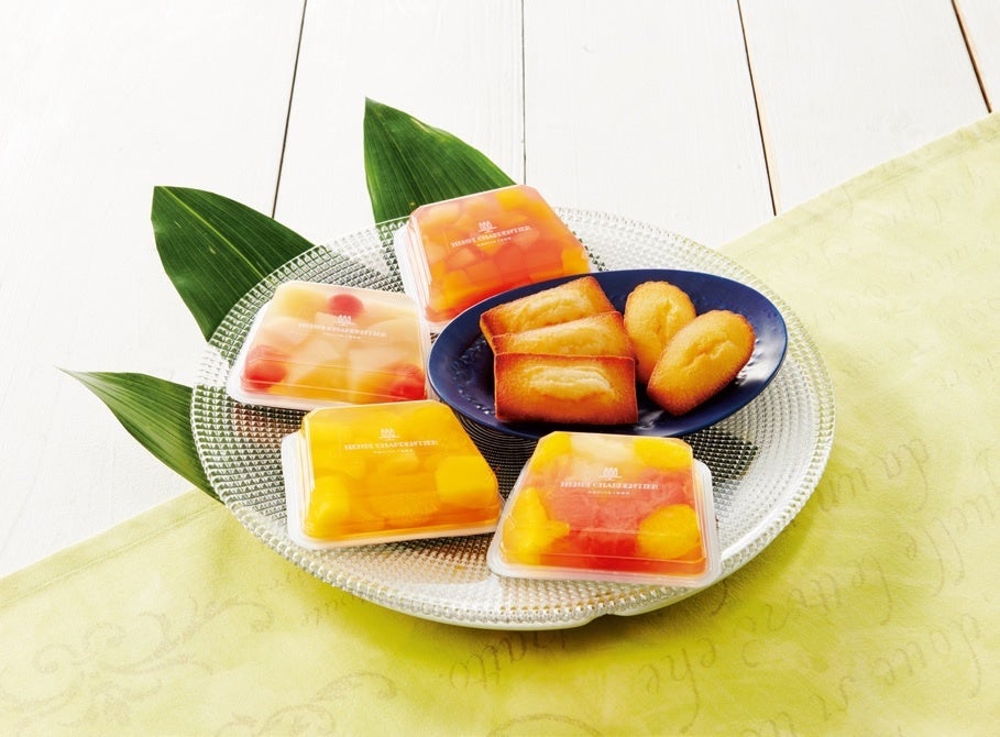 1969年兵庫県芦屋で誕生した人気洋菓子店<アンリ・シャルパンティエ>から、定番のフィナンシェ、マドレーヌにこの季節ならではのフルーツゼリーを組み合わせたギフトセットです。