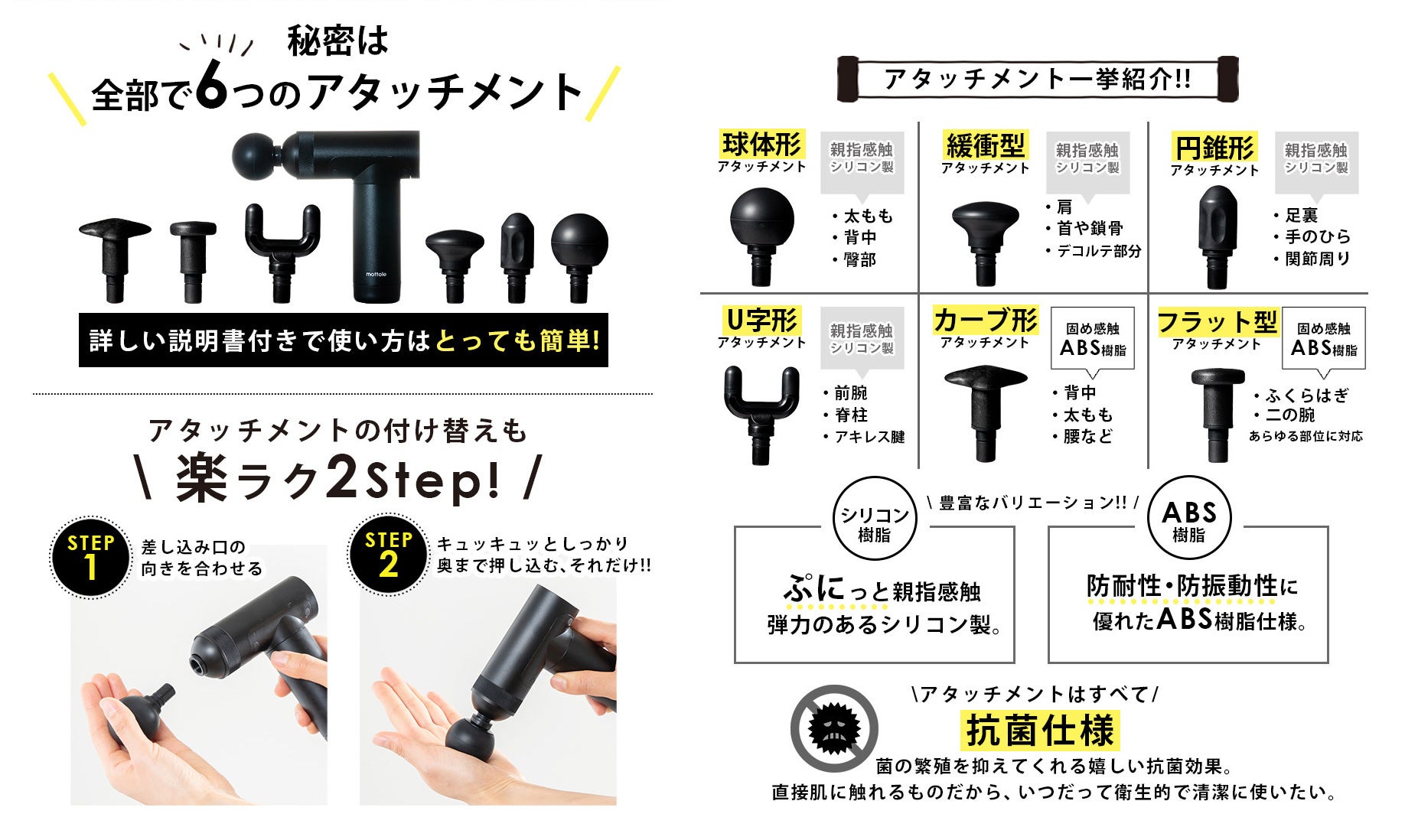 すべてのアタッチメントは抗菌加工!