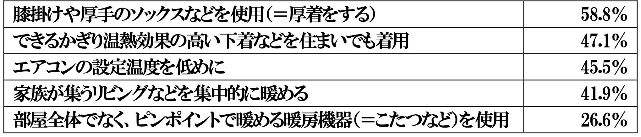 本調査を実施する前に「今冬、自宅で節電に取り組んだ人」を抽出するために事前調査を実施し、2,206名から有効回答を得ました。調査時期:2023年1月20日、調査方法、調査会社は本調査と同様です。