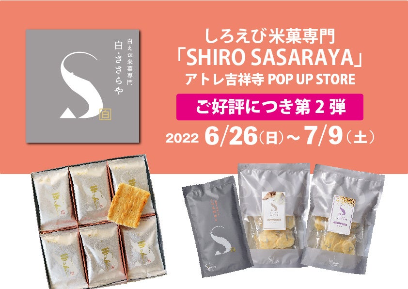アトレ吉祥寺でしろえび米菓専門店「SHIRO SASARAYA」ポップアップストア出店 6月26日(日)から7月9日(土)まで 日の出屋製菓産業