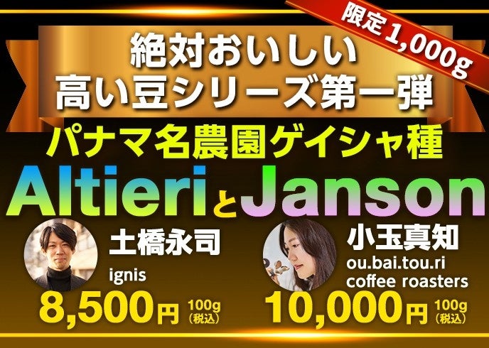 最大8人の参加者のためだけに、土橋永司さん(ignis)、小玉真知さん(ou.bai.tou.ri coffee roasters)の焙煎士お二人が、それぞれゆかりのあるパナマ ゲイシャを焙煎します!