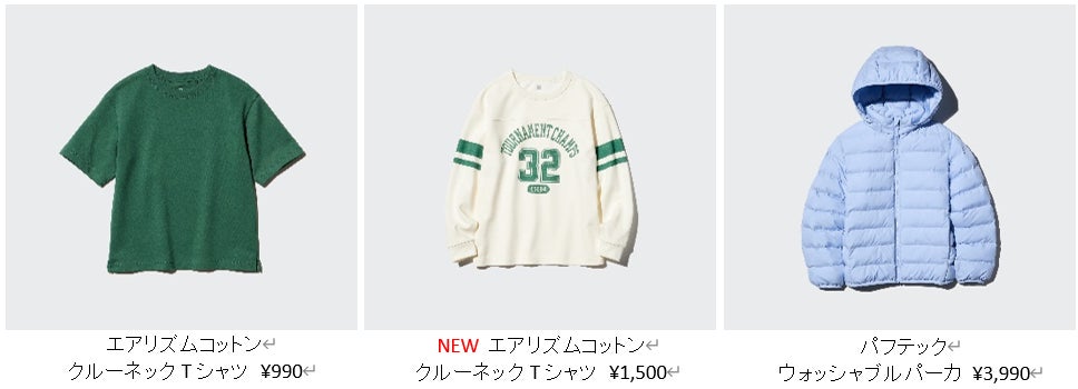 また、汗をかきやすい子どもたちに、通年で着られるTシャツを拡充。コットンの見た目でさらりと快適な「エアリズム」を使用した「エアリズムコットンクルーネックTシャツ」やUTのほか、長袖の「エアリズムコットンクルーネックTシャツ」には新しいグラフィックデザインを加えて展開します。さらに、冬の定番である「パフテックウォッシャブルパーカ」は軽量化することでコンパクトに持ち運びが便利になり、秋口はTシャツの上から羽織ったり、冬はスウェットやフリースの上に着用するなど、より長く着られる便利なアイテムへと進化しました。これらのラインナップを通じて、子どもたちに選ばれる服、子どもたちが今欲しいずっと着られる服をお届けします。