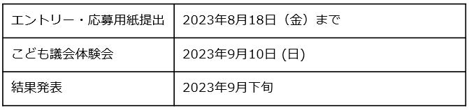 •書類選考を通過した場合、9月10日(日)に実施する「こども議会体験会」に参加ができること