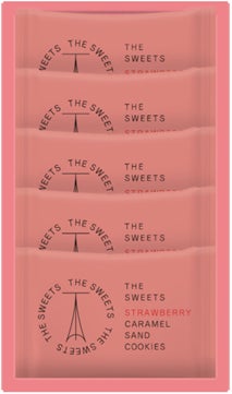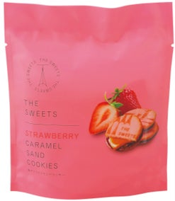 福岡県産あまおう苺のフリーズドライを混ぜた濃厚なラングドシャ生地でキャラメルとチョコレートをサンドした商品です。