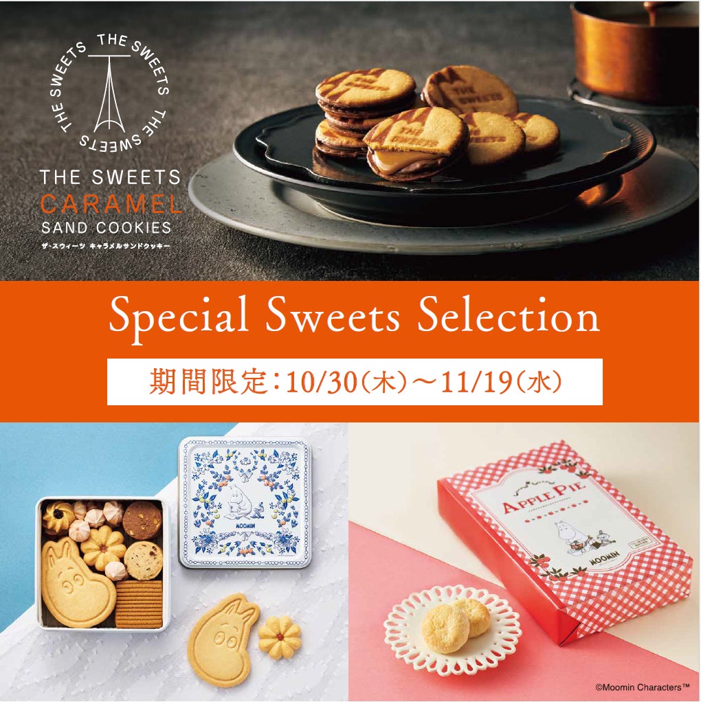 本ポップアップストアは、ショップ名を【Special Sweets Selection】として、累計売上枚数2,000万枚を超えるTHE SWEETSの看板商品「キャラメルサンドクッキー」シリーズに加え、今年4月より販売を開始したムーミンとのコラボレーション商品も販売いたします。