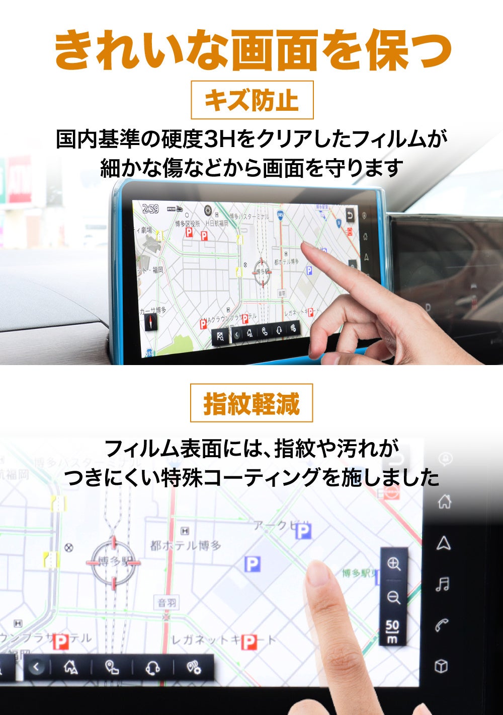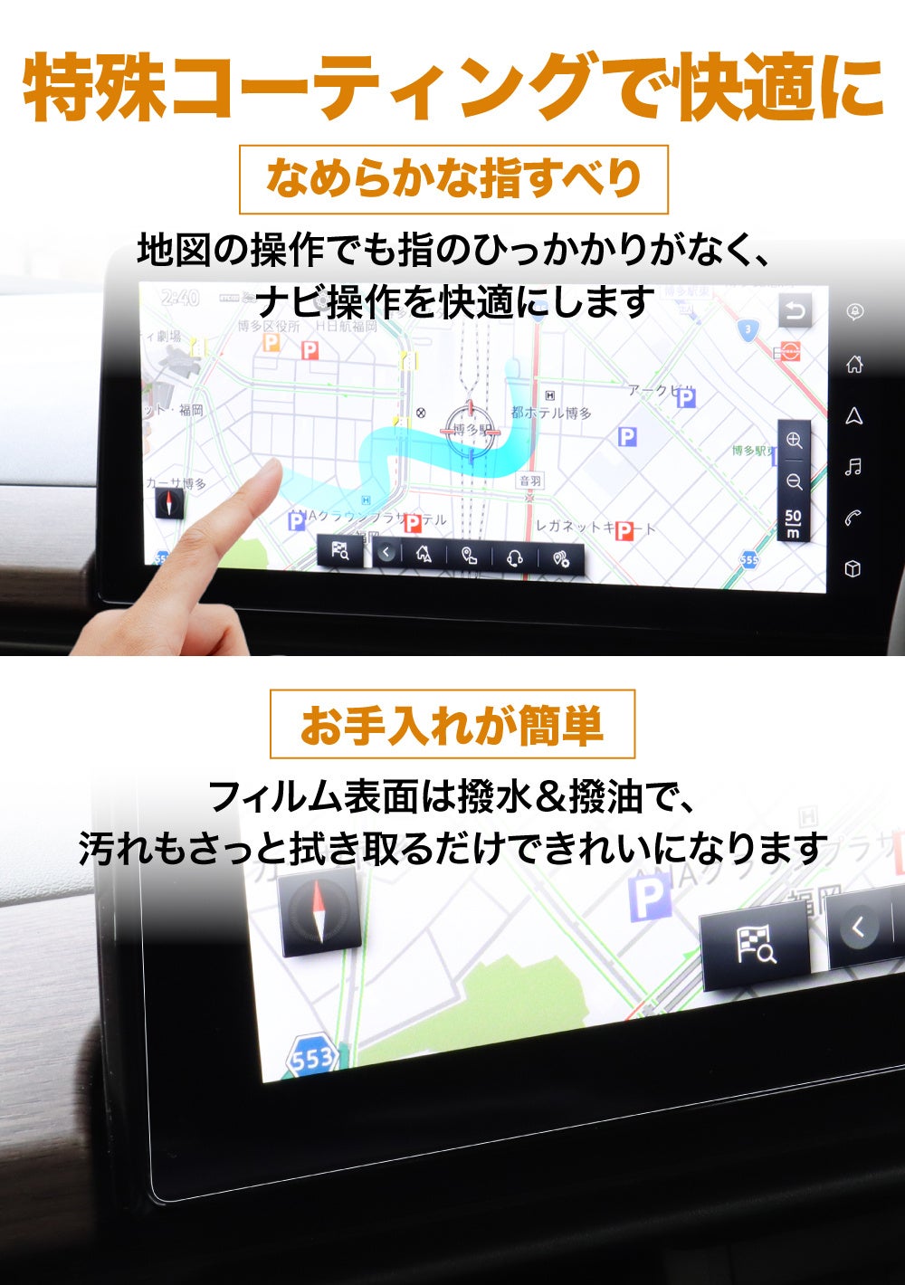特殊コーティングにより、地図の操作でも指のひっかかりが少なく、ナビ操作を快適にします。