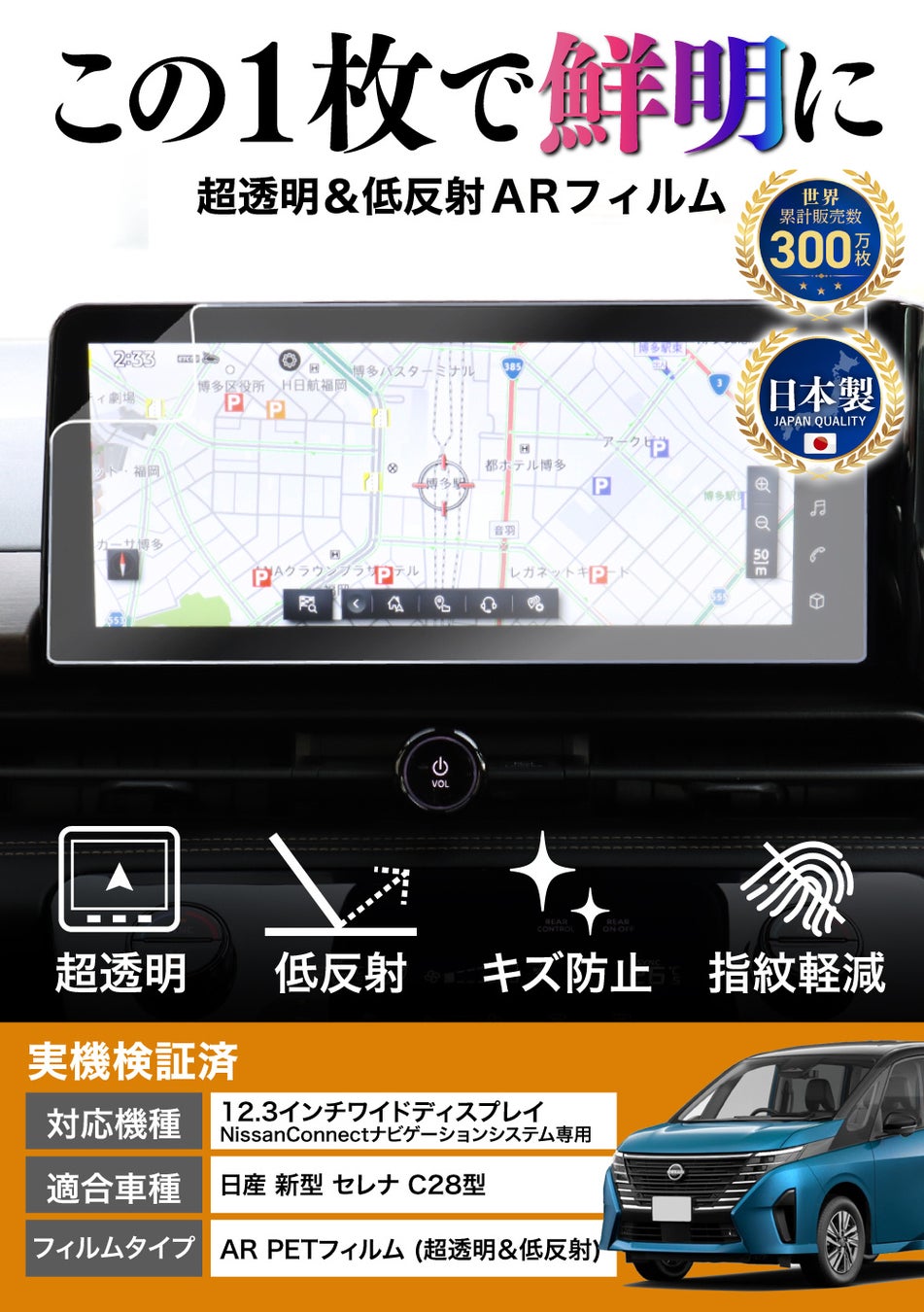 日産 新型 セレナ 12.3インチナビ 専用 保護フィルムが新発売! この1枚で「⾒やすく・傷を防ぐ・画面の美しさはそのまま」、ベルモンドの⼈気カーナビフィルムシリーズ