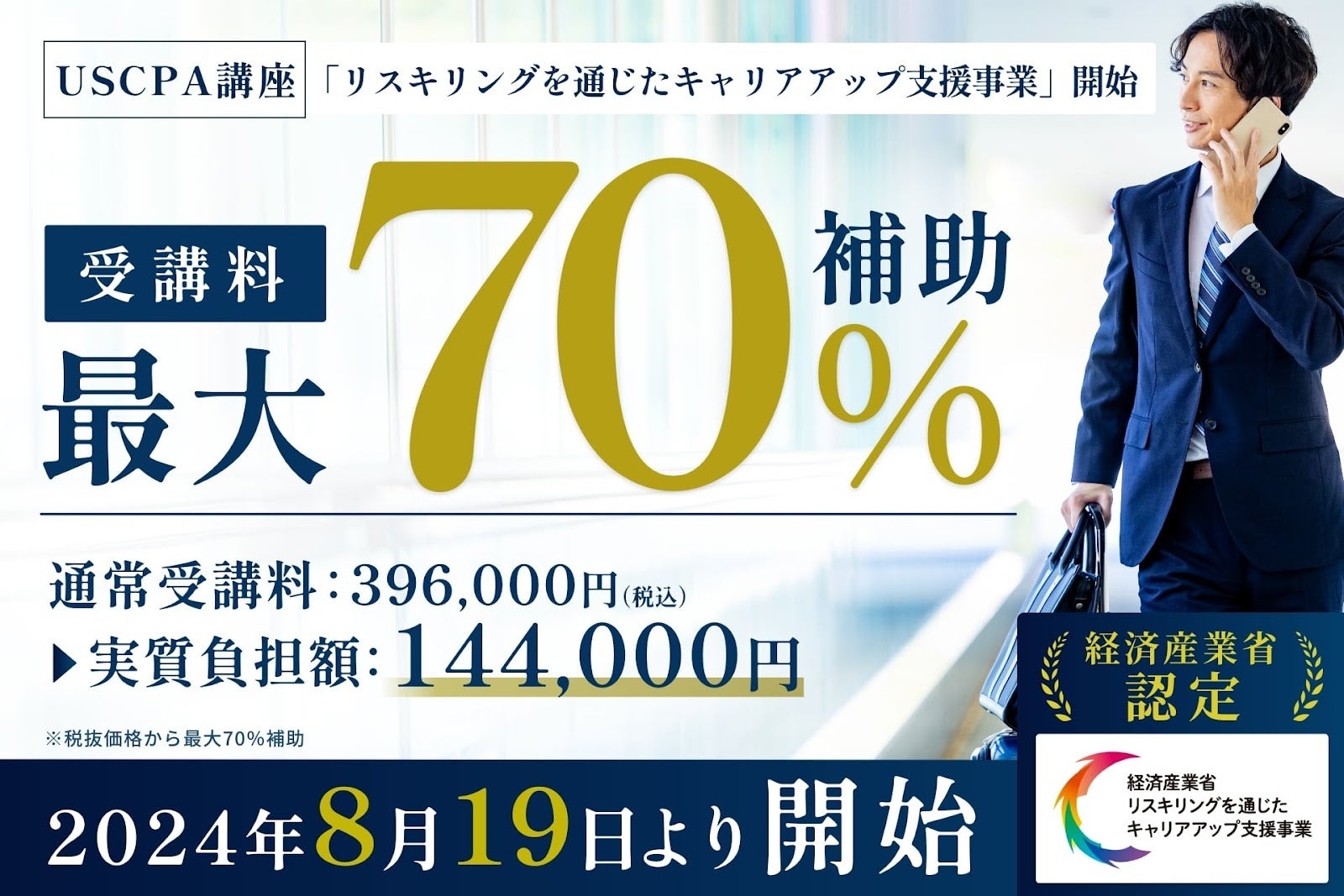 CPAエクセレントパートナーズ株式会社(所在地:東京都新宿区、代表取締役:国見 健介)が運営する公認会計士資格スクール「CPA会計学院(https://cpa-net.jp/)」は、U.S.CPA講座における経済産業省「リスキリングを通じたキャリアアップ支援事業」への参画をお知らせします。