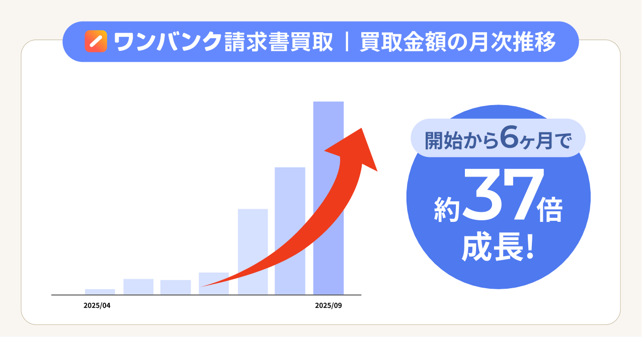 個人事業主向け請求書買取サービス「ワンバンク請求書買取」、開始6か月で月間買取総額が約37倍に拡大
